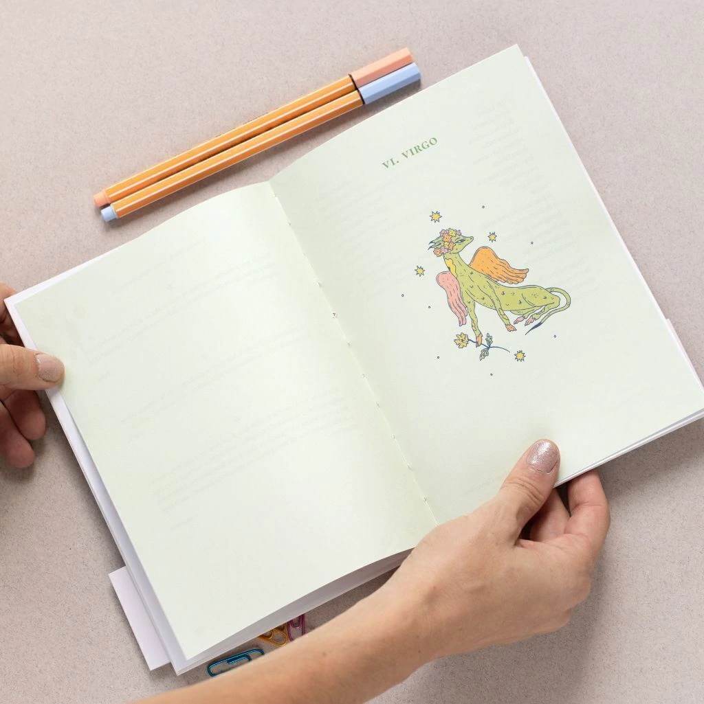 Todo en este cuaderno de inspiración astropoética conduce al encuentro con los ejercicios creativos que hay al final de cada capítulo. Están diseñados para que la astrología nos atraviese el cuerpo e incluyen un espacio para registrar el proceso.