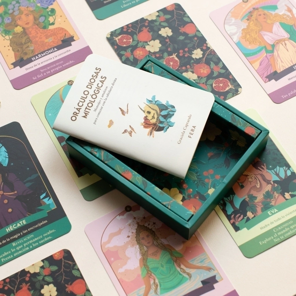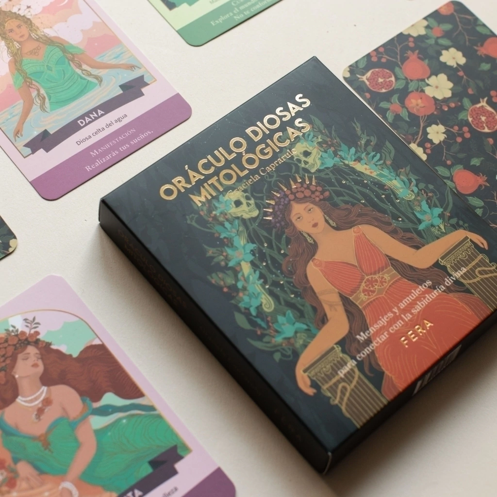 Oráculo Diosas mitológicas contiene 44 mensajes para conectar con la sabiduría divina. Presenta 22 diosas de distintas culturas y sus amuletos de poder. Estos amuletos simbolizan atributos y advertencias que han asistido a las deidades de sus mitos.